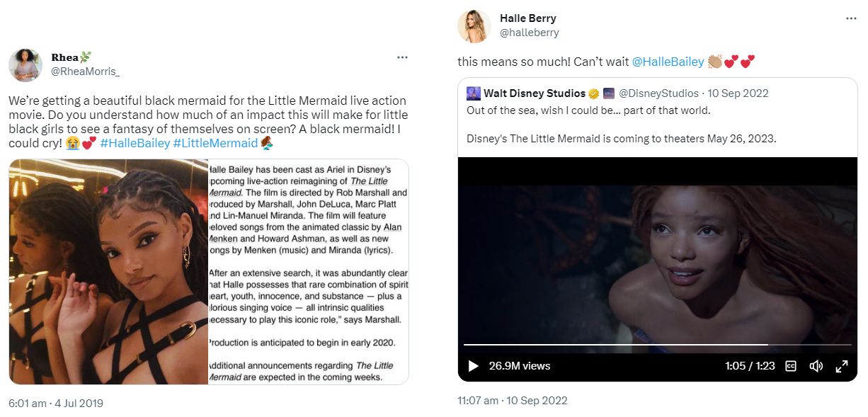 We should take a beat to note that yes, there’s a problematic history of Disney “princesses” and their potential to negatively influence girls’ self-perceptions. But there’s also room here to acknowledge the win for inclusivity. Disney are clearly working hard to course correct their past, and their casting of Bailey once the trailer dropped was widely praised as a positive stride for representation. Hey, when Halle Berry tweets applause, you’ve done something right!